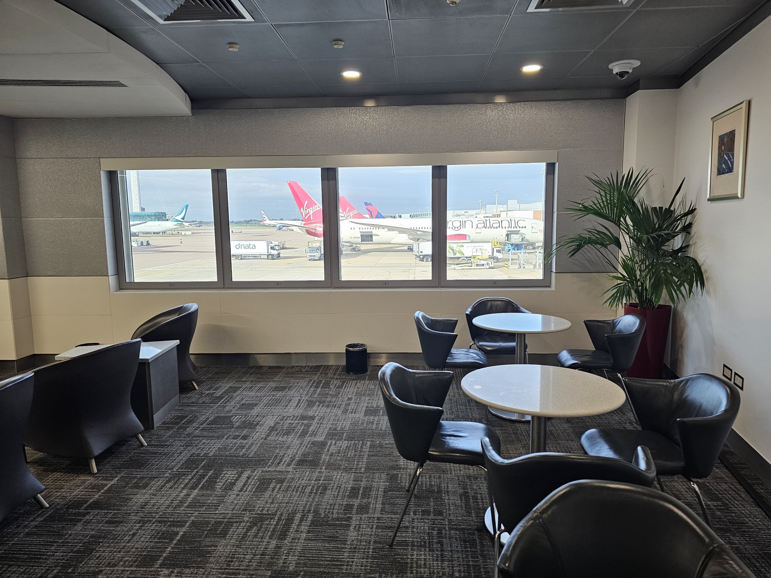 Suurepärane eelis on suurepärane vaade lennujaama perroonile - otse ootesaali ees on suurte kauglennukite stendid ning siit on näha ka Heahtrow' lennujaama ikooniline torn.