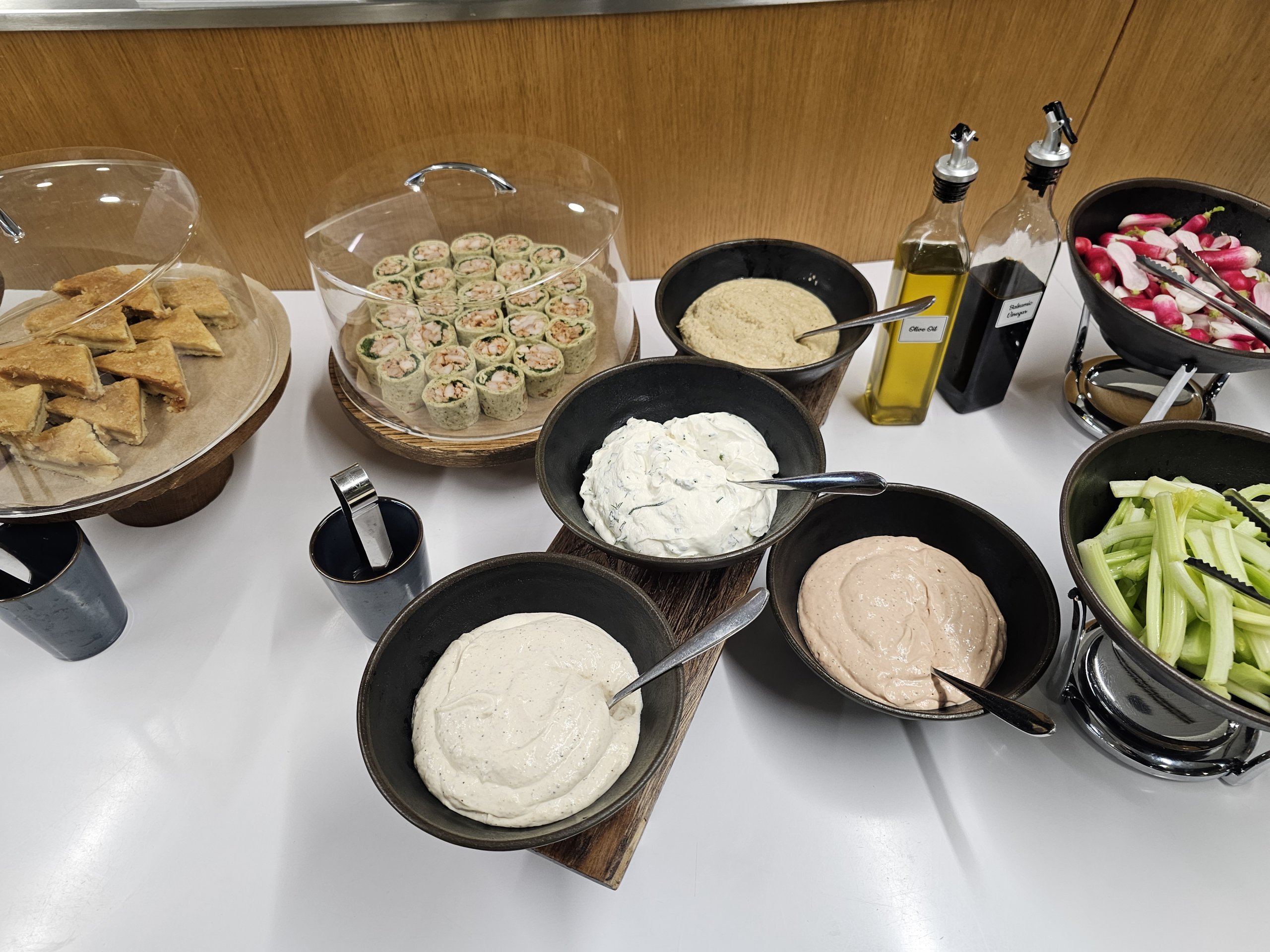 Seal on ka mõned kausid köögiviljadega, mida ma hindan. Selle kõrval saab valida 3 sorti laiali ja saiakesi. Seevastu puuviljadest on peaaegu täielik puudus.