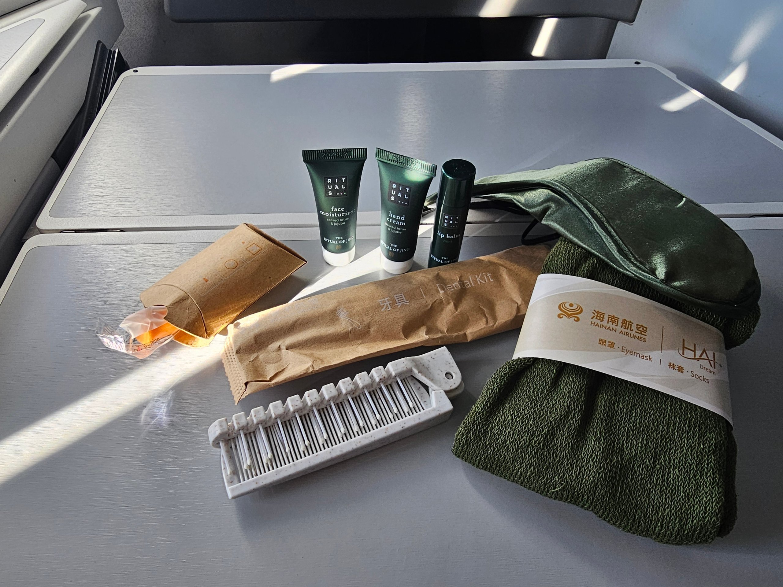 Hainan Airlinesi äriklassi Amenity-komplekt näeb esmapilgul soliidne välja, kuid ilma suurema originaalsuseta.