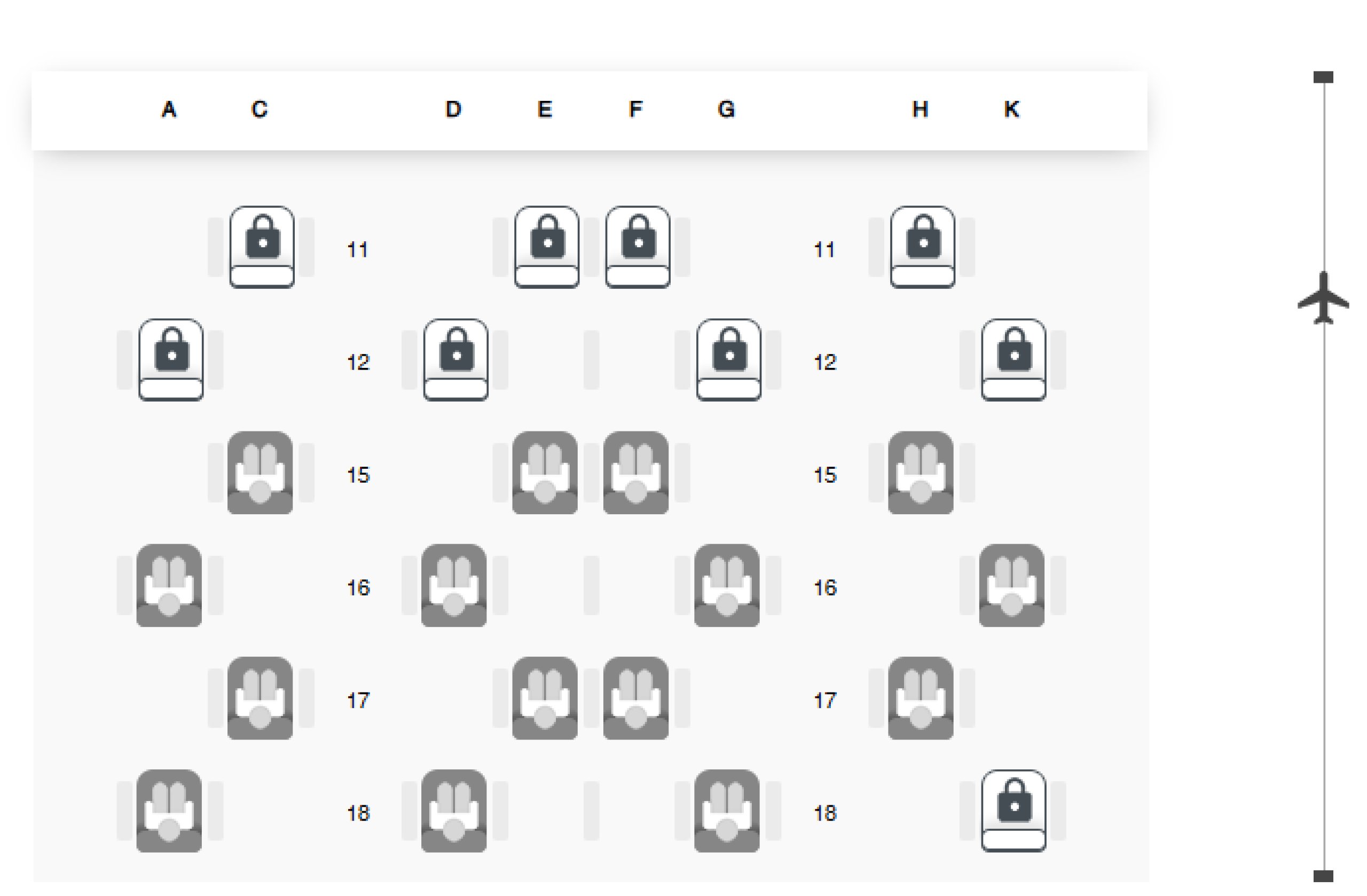 Kui aga reisite paarina ja loodate, et paar istekohta keskel annab teile koos privaatsust, siis peate pettuma. Reaalselt ei näe te teineteist üldse.