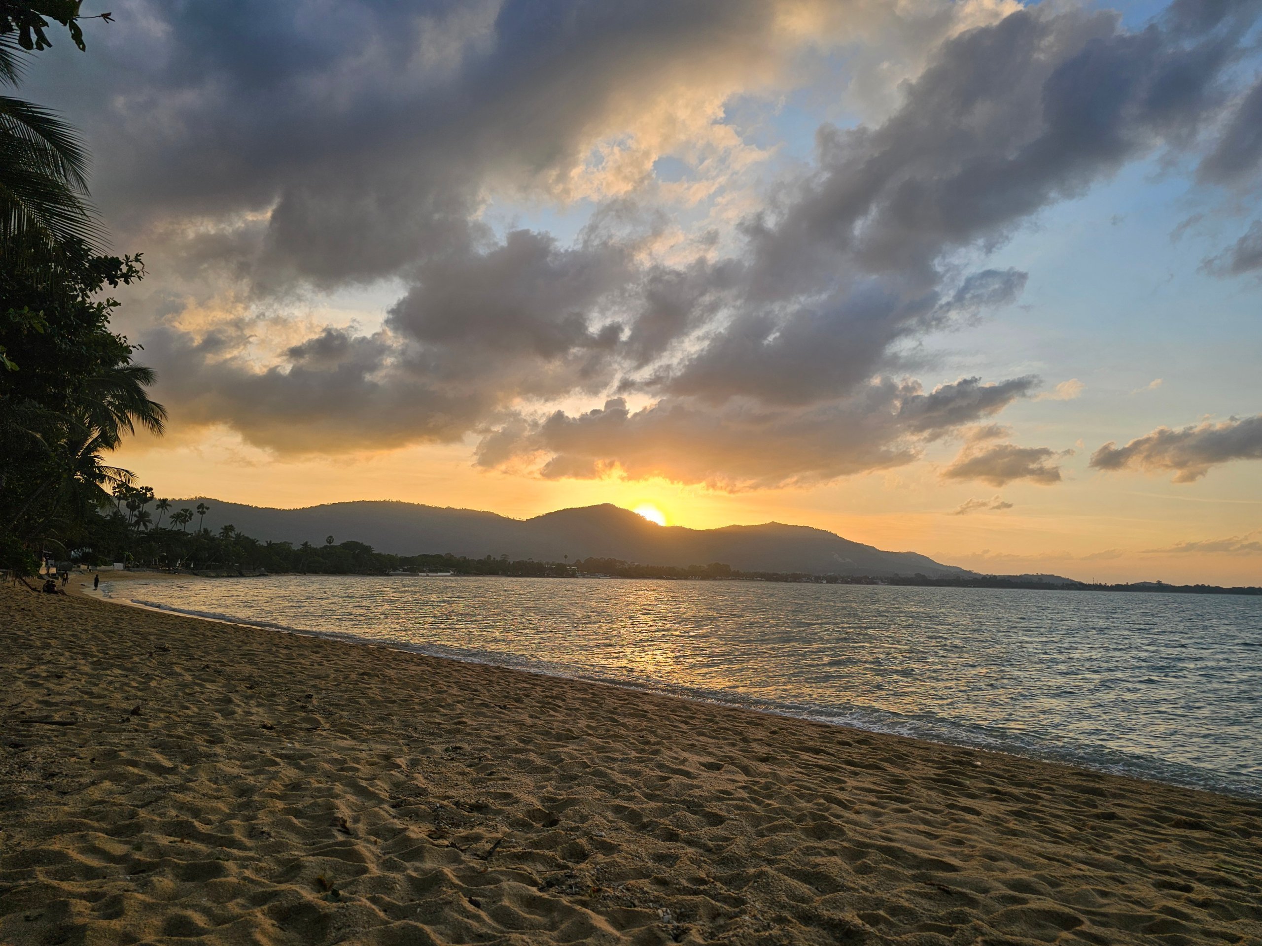 Rannast saab vaadata suurejoonelisi päikeseloojanguid Koh Samui mägede kohal.