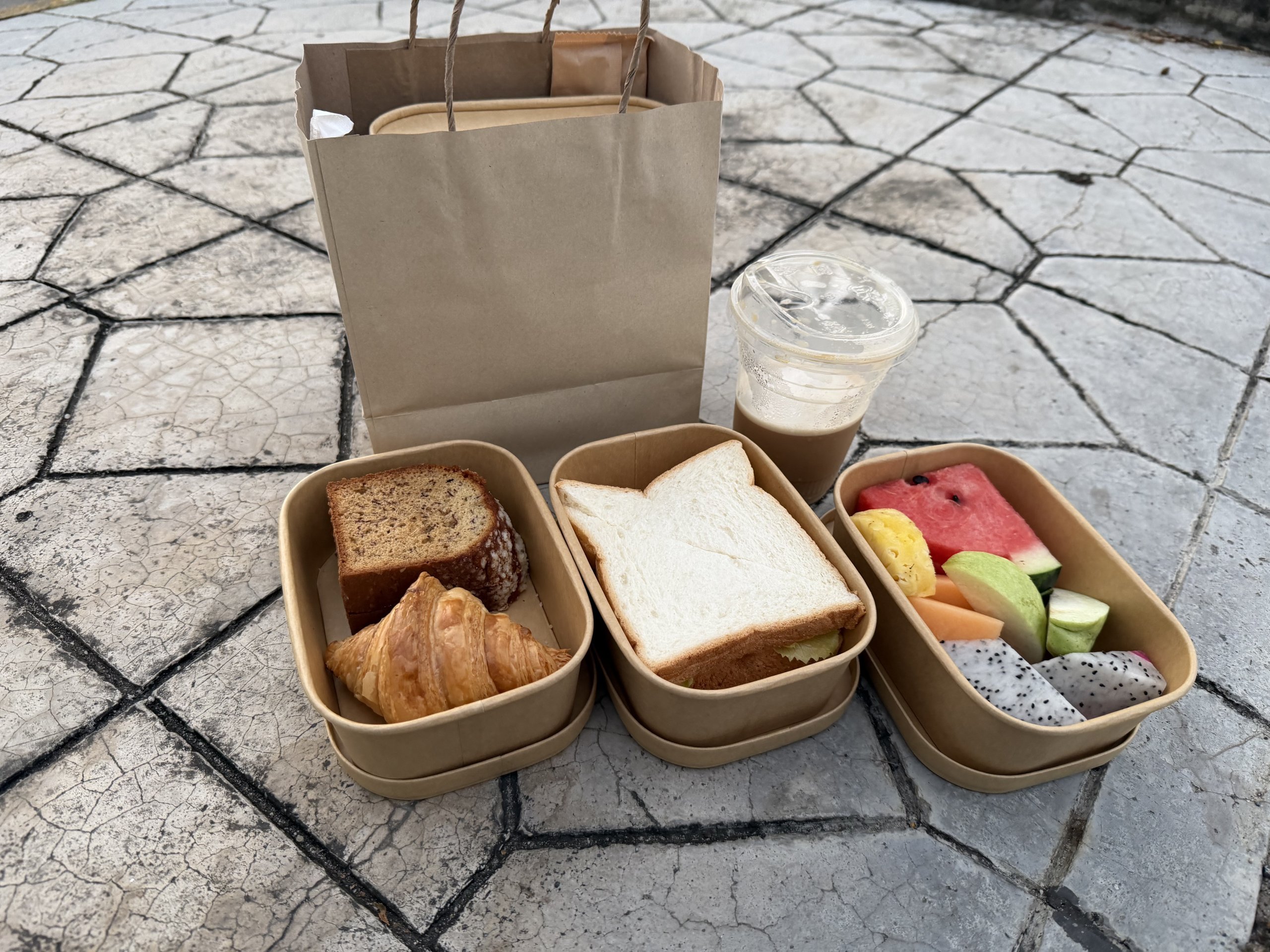 Vastuvõtul pakkusid meile omalt poolt võimalust võtta kaasa hommikusöögipakend. Pakett sisaldas kohvi, kahte toasti ja puuvilju. Üsna elementaarne, kuid varahommikuse päeva jaoks täiesti piisav ja väga tore žest.