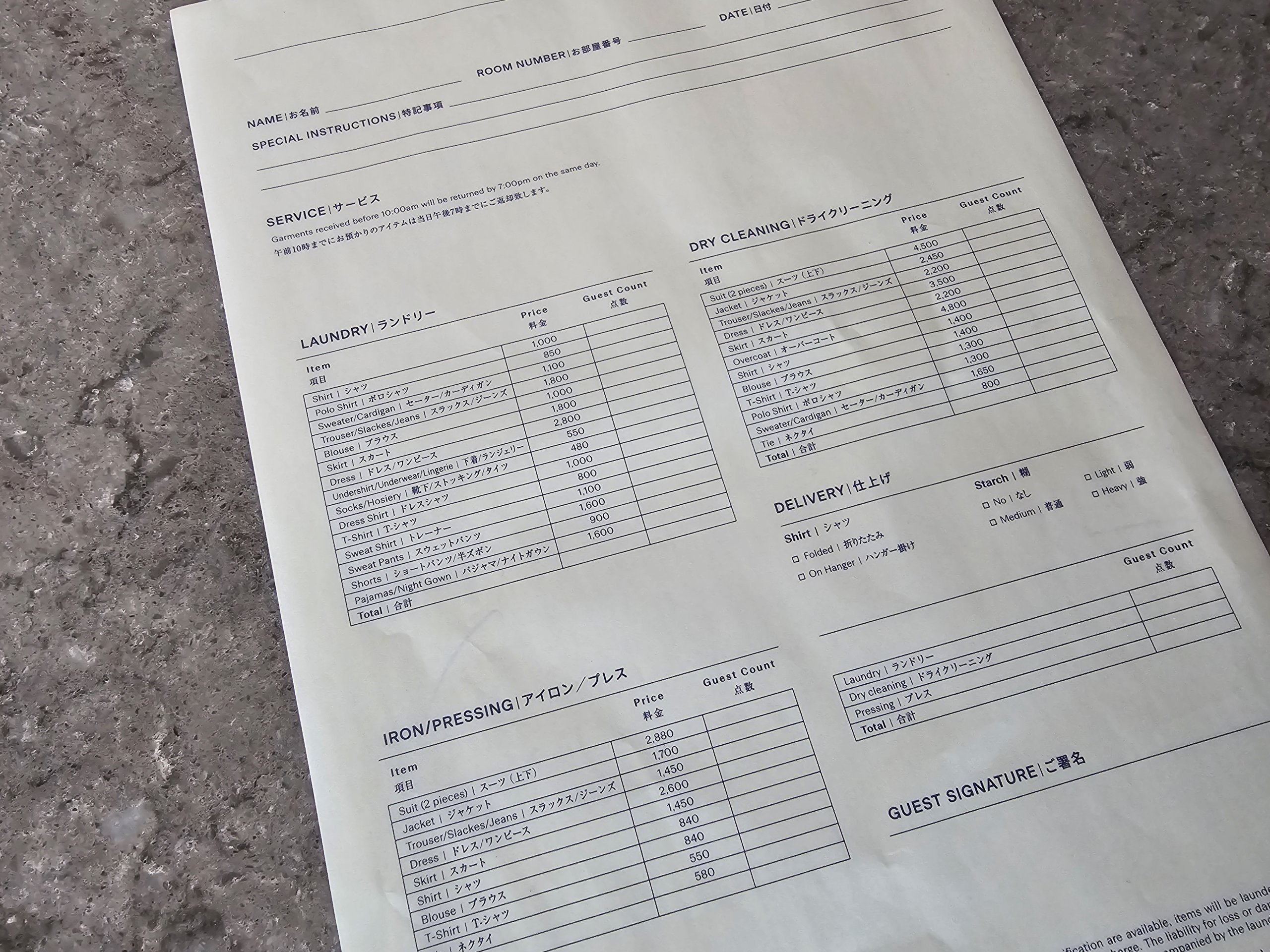 Nn Laundry Service töötab lihtsalt. Te panete oma räpased riided spetsiaalsesse kotti oma tuppa, puhastusteenindaja võtab need üles ja toob tavaliselt järgmiseks päevaks pestuna tuppa tagasi.