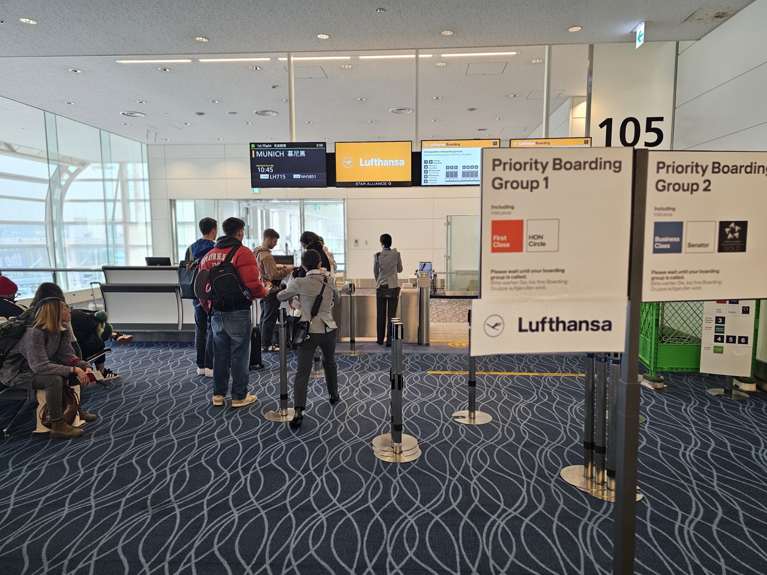Kuna mul on kaks suurt kohvrit, siis pean minema check-in leti juurde. Kahjuks ei ole Lufthansal Haneda lennujaamas automatiseeritud leti, nii et pean ootama, kuni check-in algab.