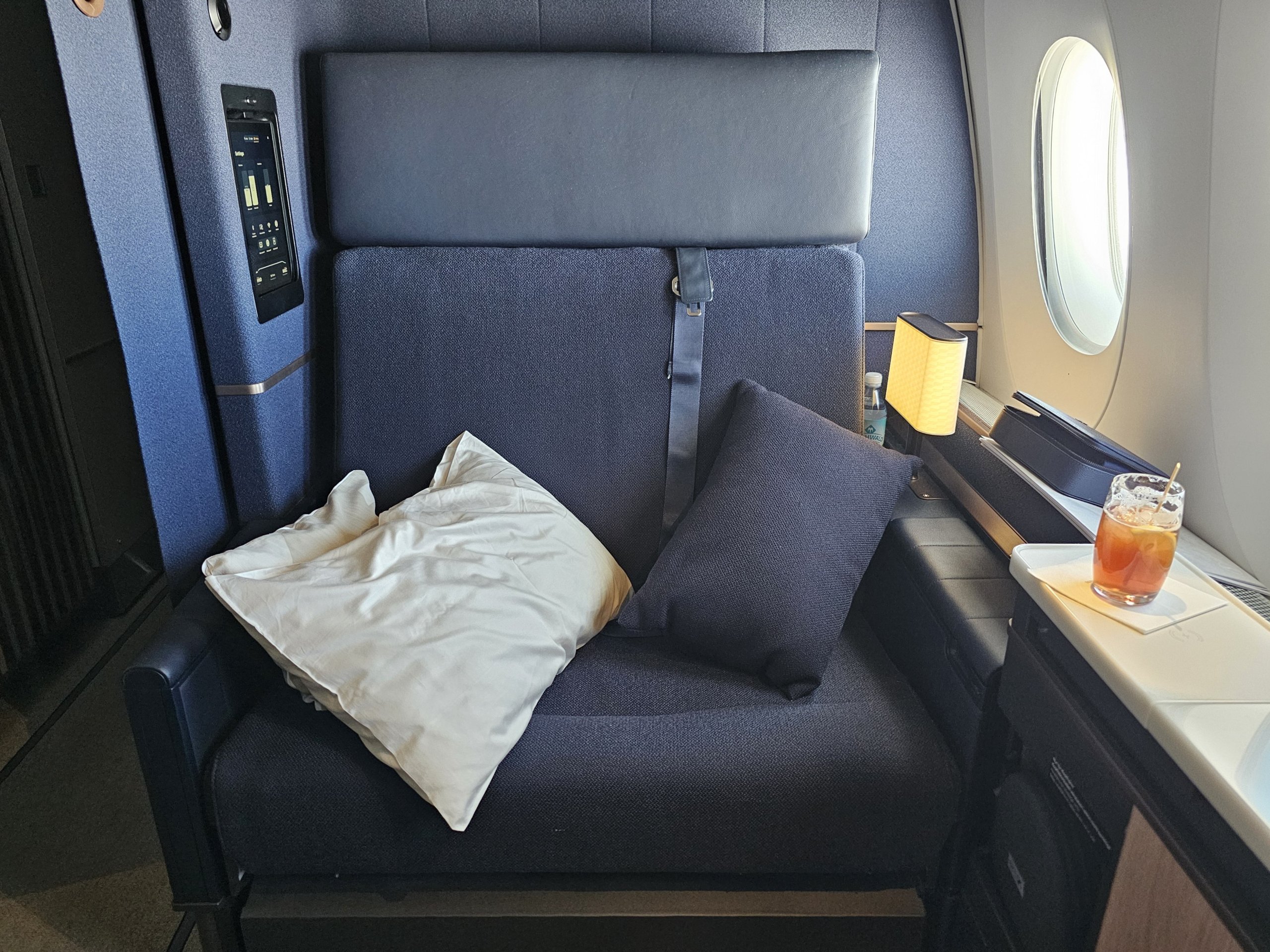Istekoht on varustatud äärmiselt mugava padja ja tekiga, mida saab igal ajal lennu ajal kasutada. Magamiseks saate seejärel meeskonnalt veel ühe teki ja voodipesu.