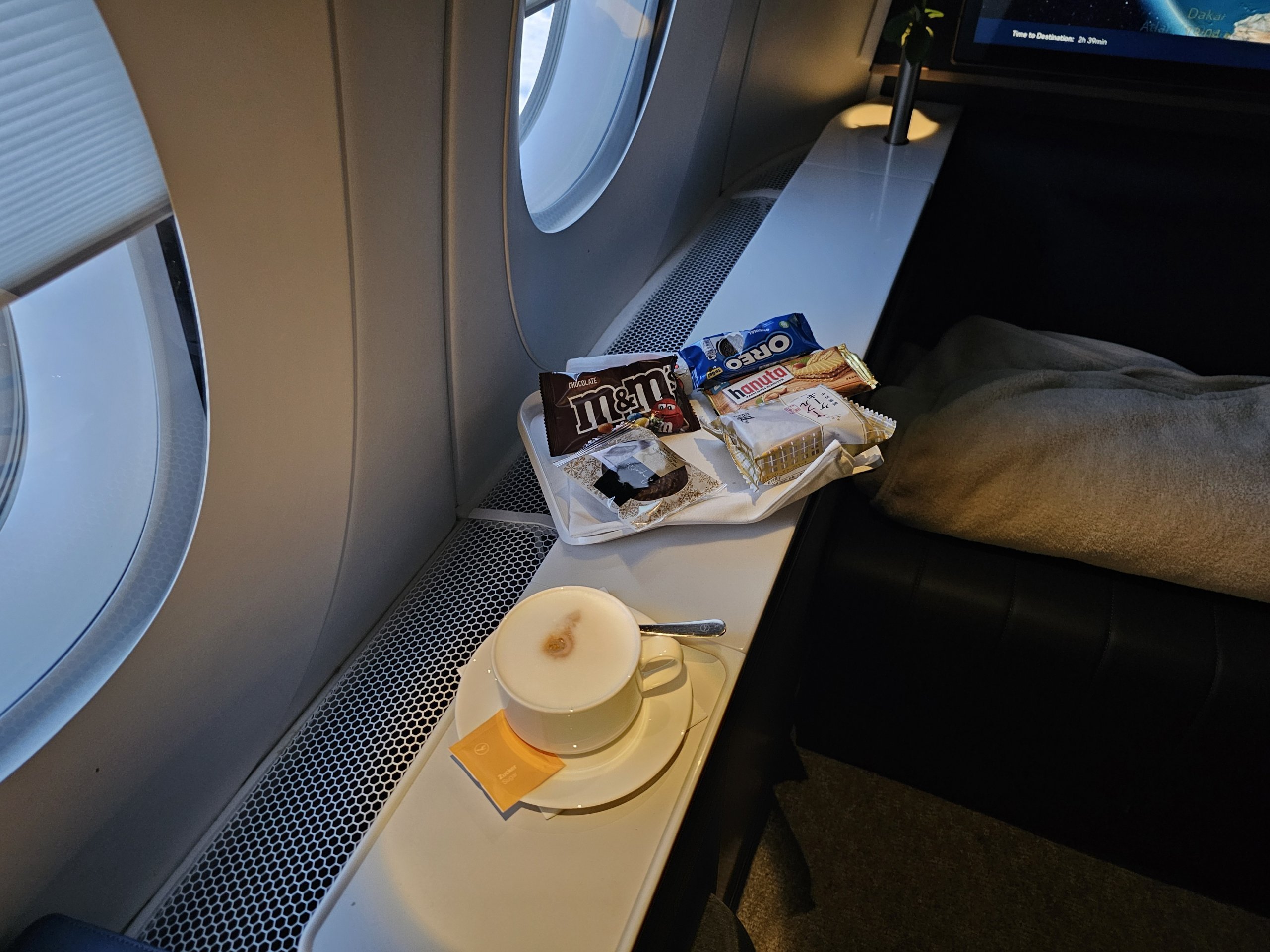 Enne magamaminekut saan meeskonnalt korvi maiustusi ja soolaseid kreekereid, mis on kambüüsis kogu lennu ajaks saadaval.