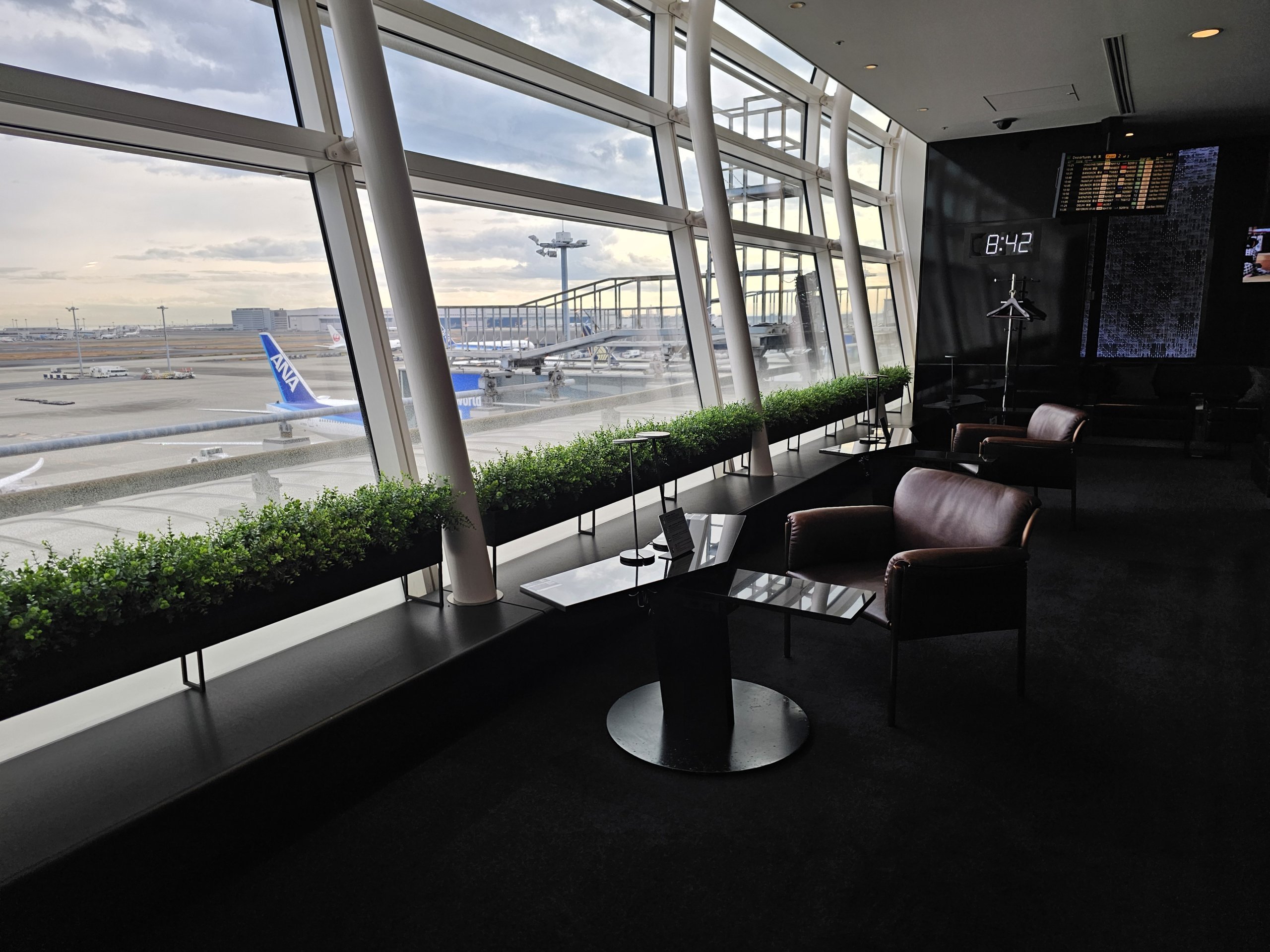 Salong on väga avar, kust avaneb suurepärane vaade lennurajale ja kus on palju kabinette, mis jäljendavad ANA Japan Airlines'i esimese klassi istekohti.