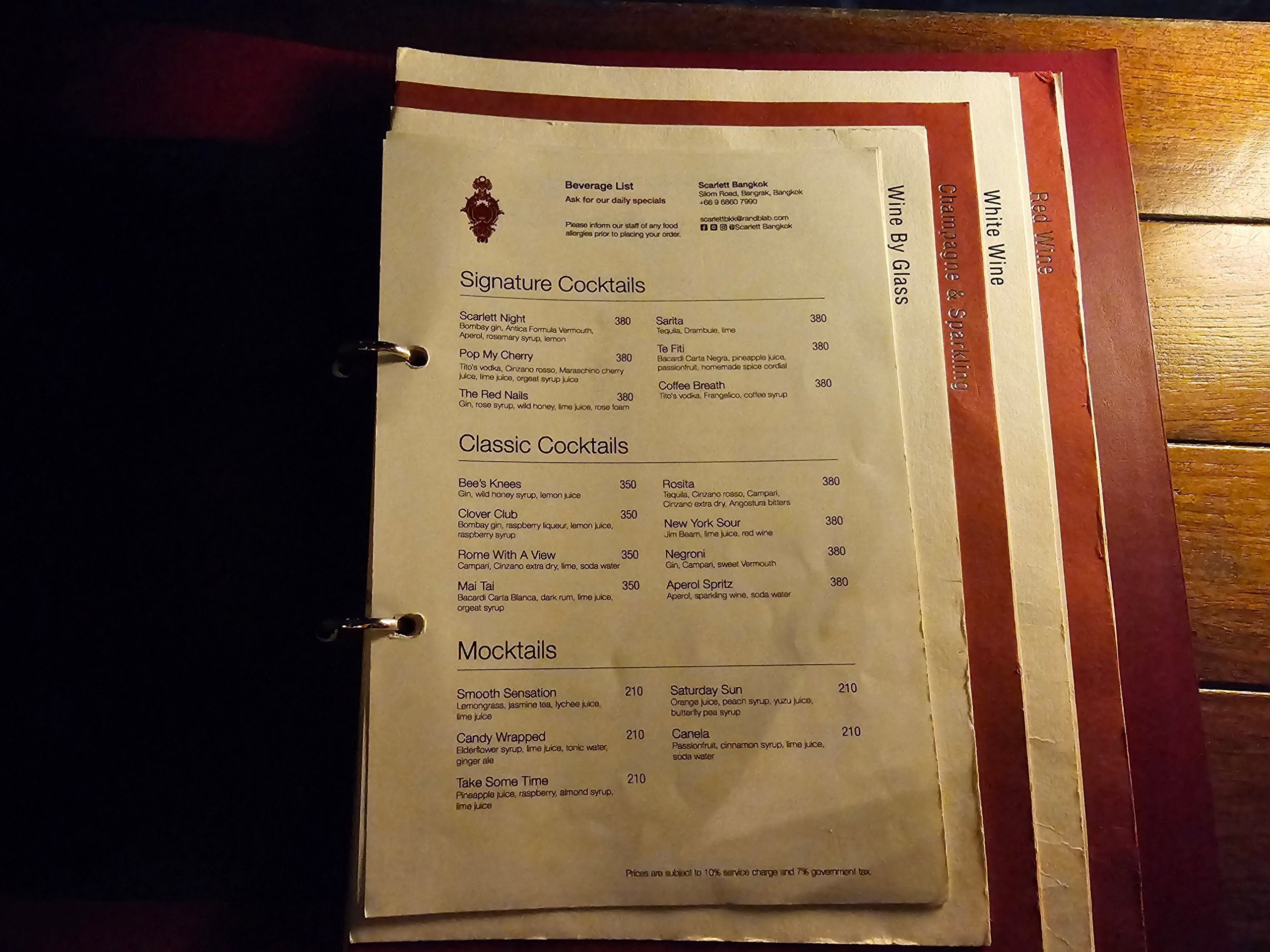 Me käisime Scarlettis ainult õhtuse joogi jaoks ja see oli meie jaoks pigem alahinnatud. Me kindlasti nautisime oma jooke rohkem teistes Bangkoki baarides, mida me selles artiklis kirjeldame: