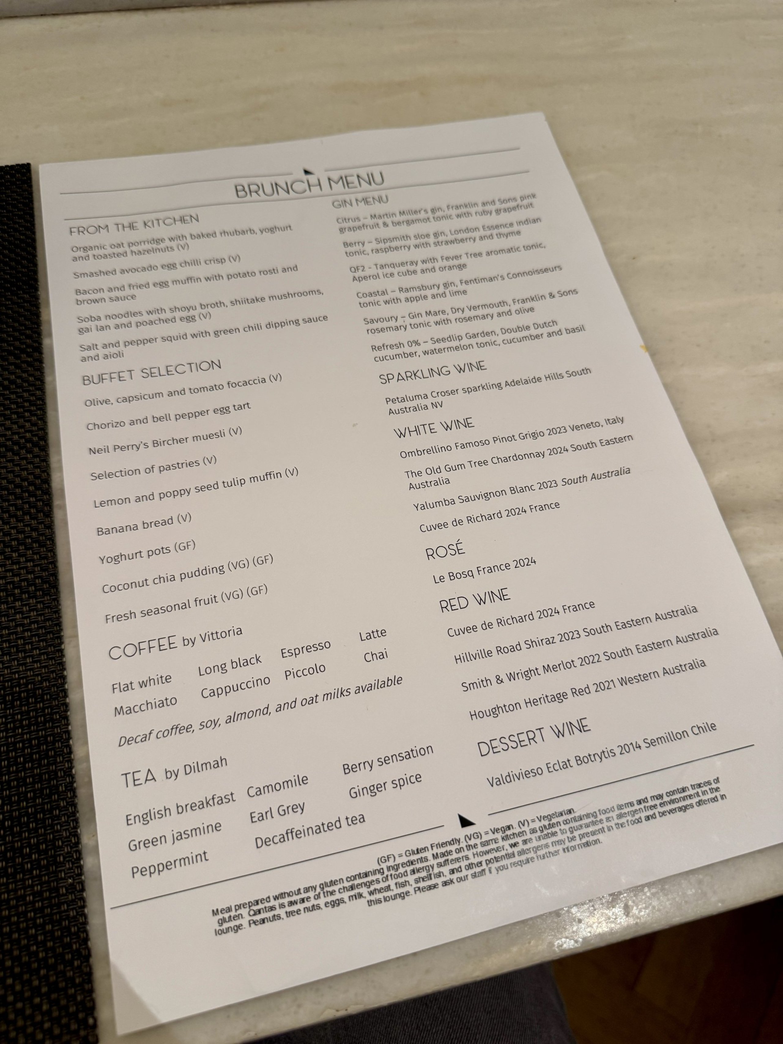 Lisaks väikesele buffetile on Qantase ootesaalis ka klassikaline à la carte restoran - see on ainus terminal 3 ootesaalidest, kus seda tehakse.