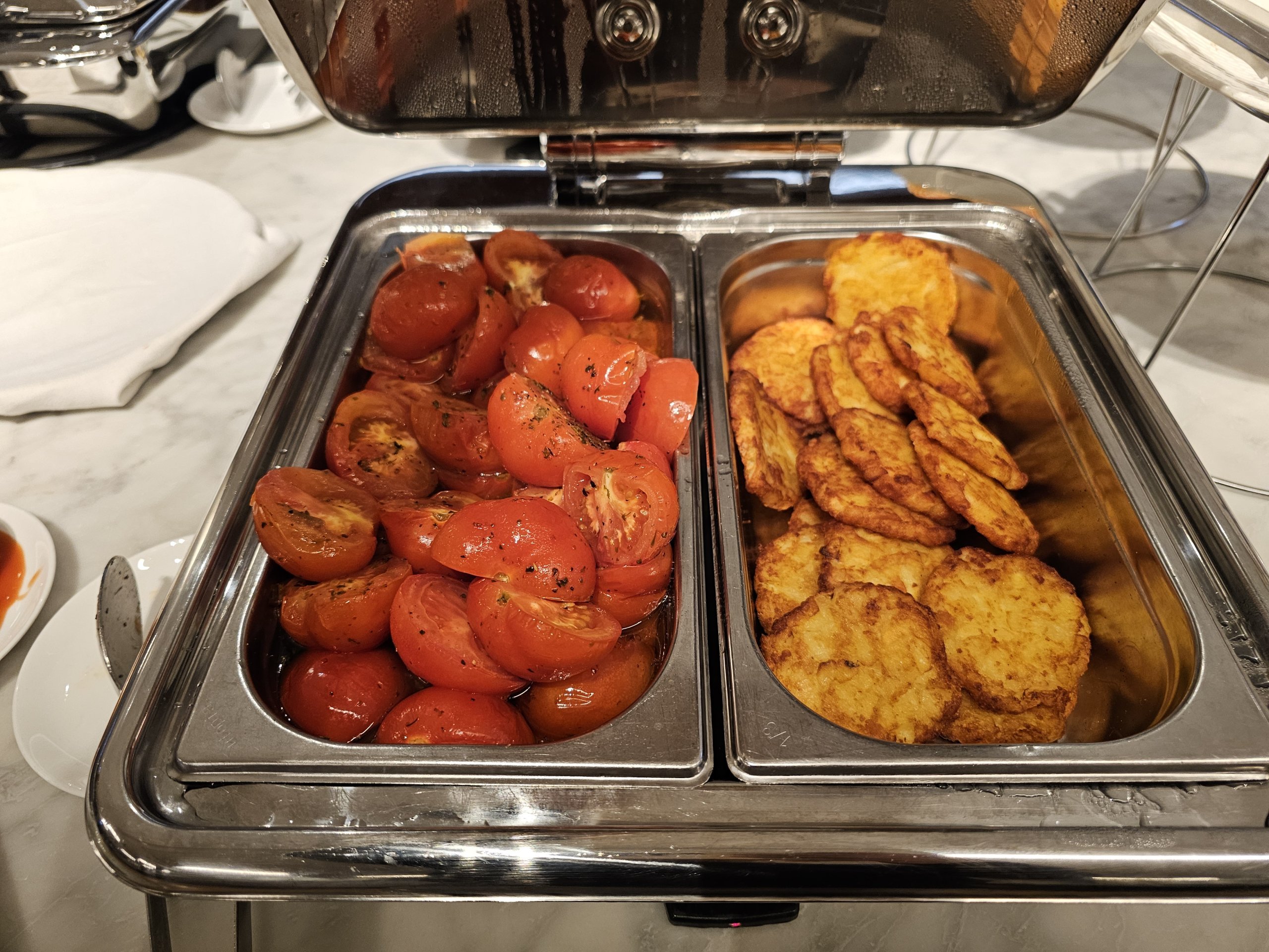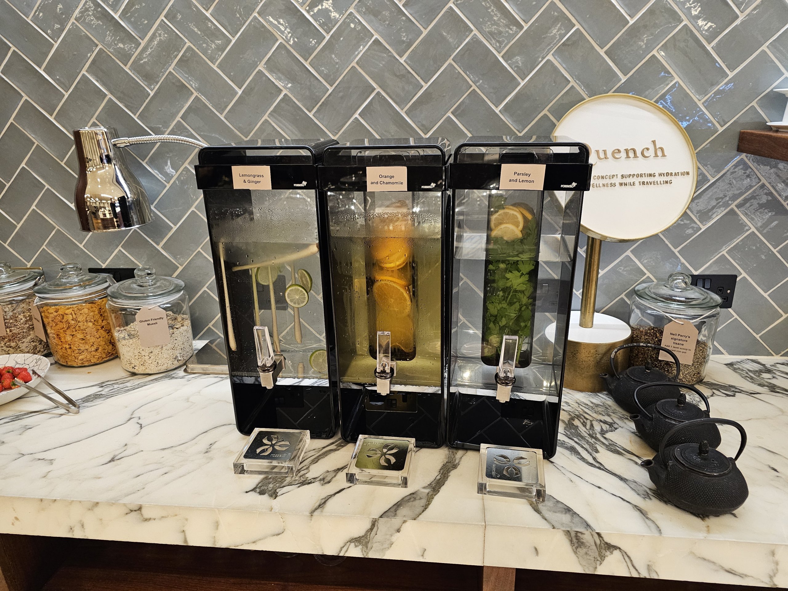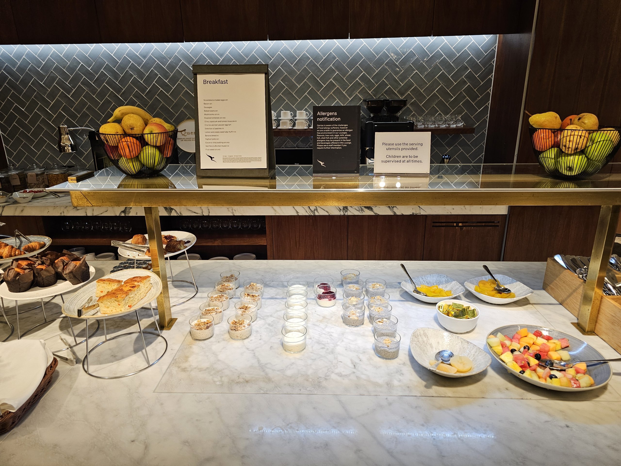 Täielikult puuduvad aga letid muude maiustuste või ehk juustu või singiga. Üldiselt ei ole toidupakkumine nii ulatuslik kui näiteks Cathay Pacifici ootesaalis kõrval.