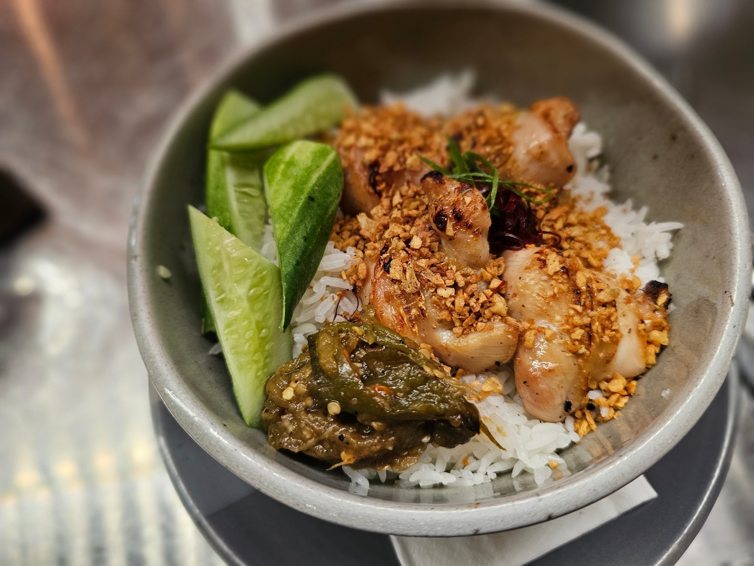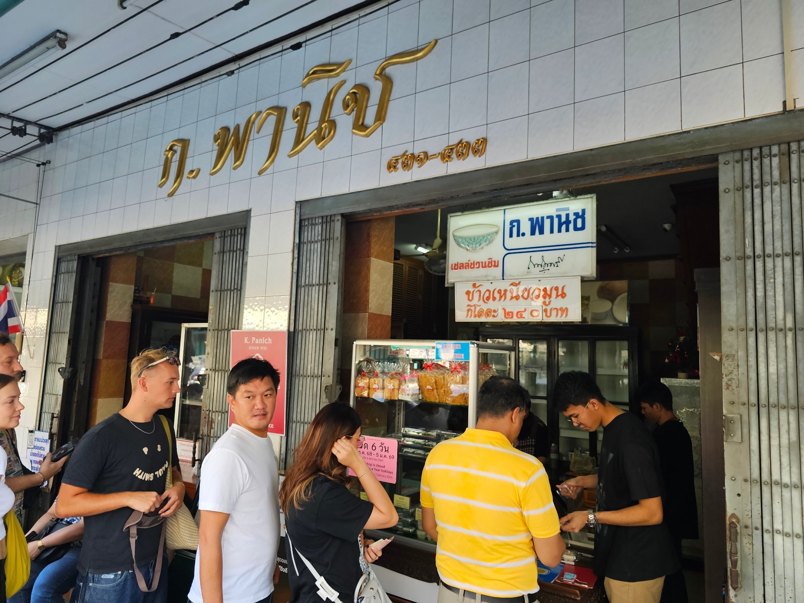 Bistroo on aknaga tänavale ja väikese toaga, kus saab istuda. Seal oli lihtsalt kiire, nii et me sõime oma mango sticky rice'i ja traditsioonilist Tai pudingut kõrvaloleval kõnniteel.