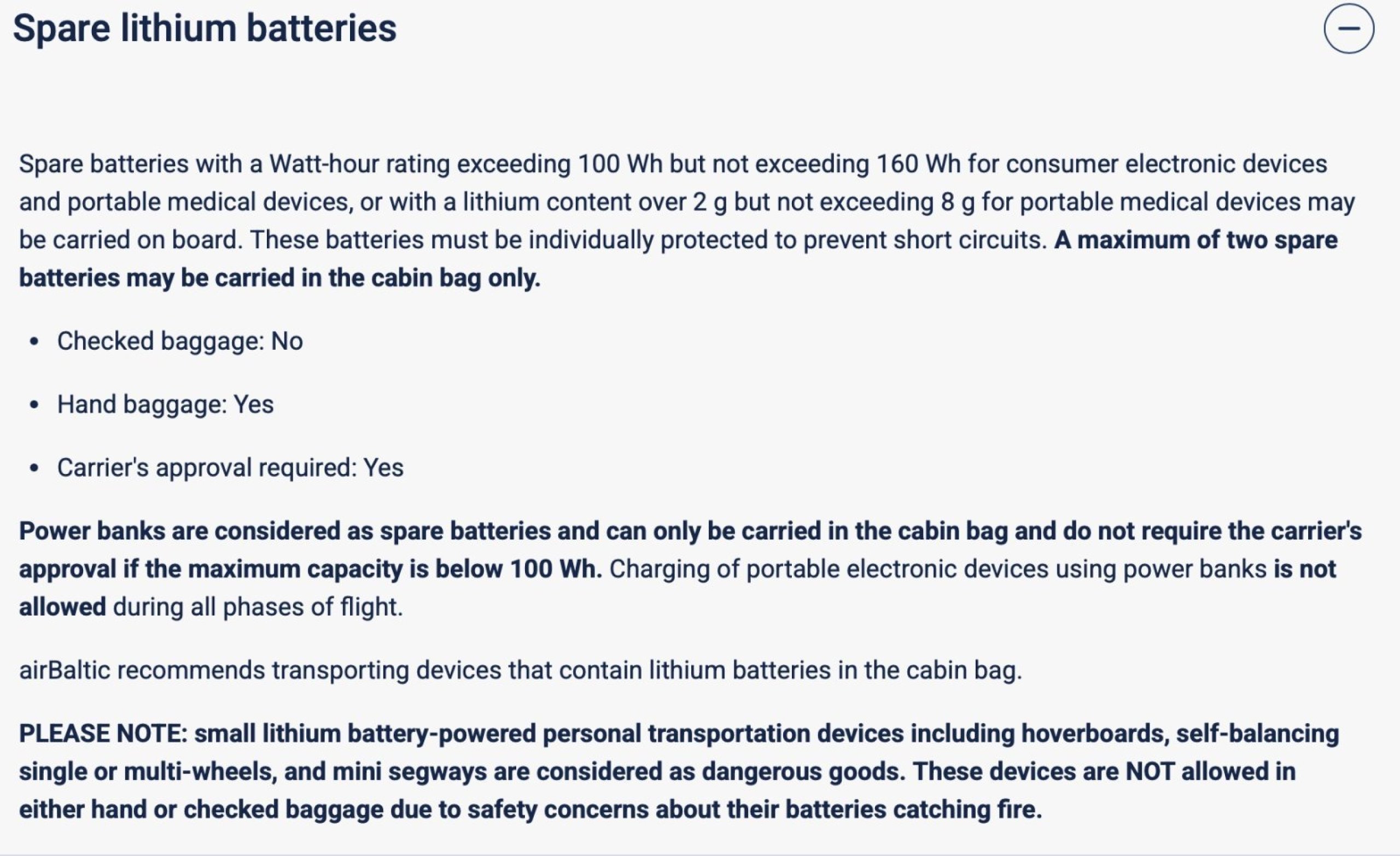 airBaltic keelab ka lennuki pardal olevate elektripankade kasutamise: https://www.airbaltic.com/en/bag...strictions