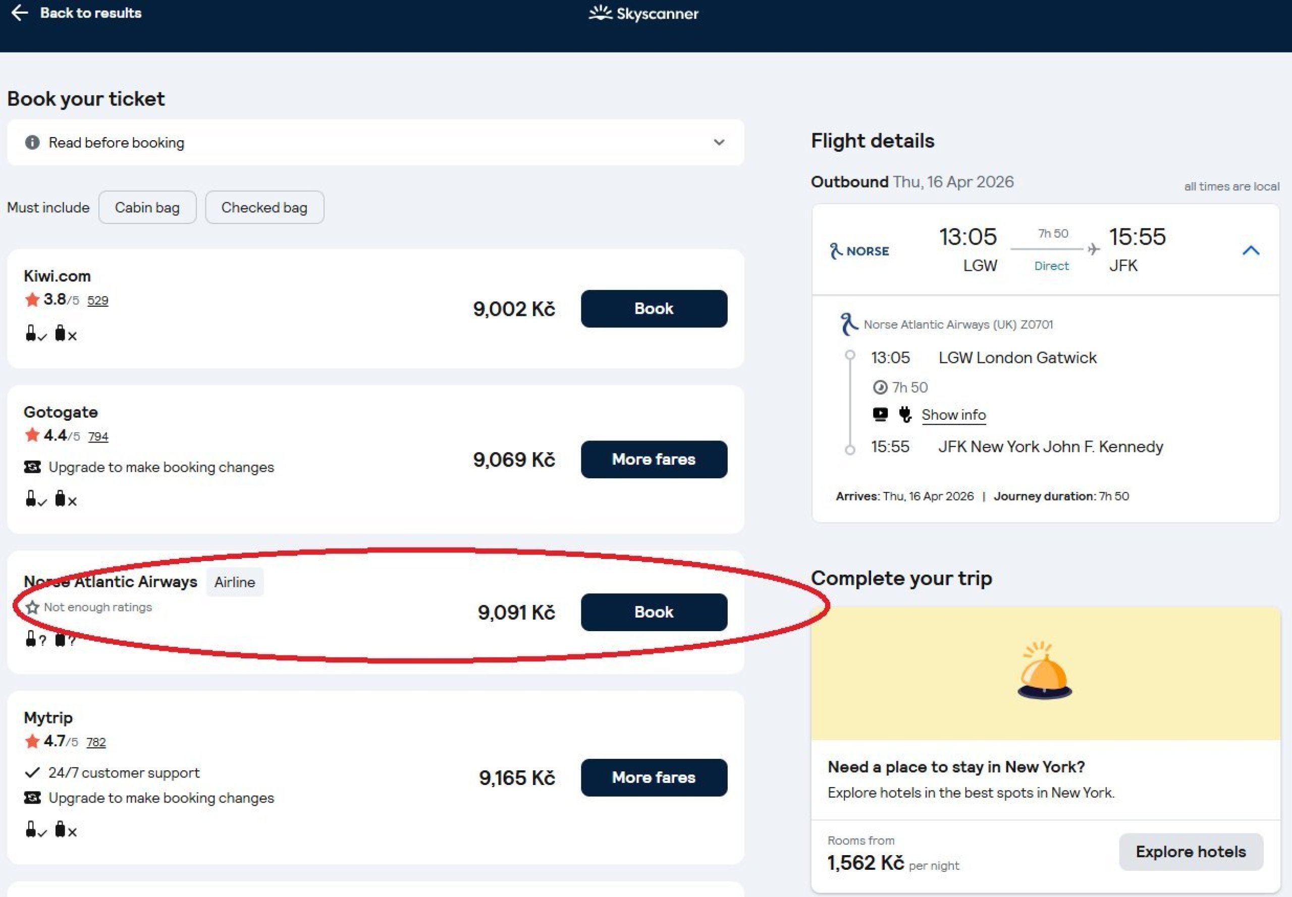 Kui võimalik, klõpsan Skyscannerist otse lennufirma veebilehele.