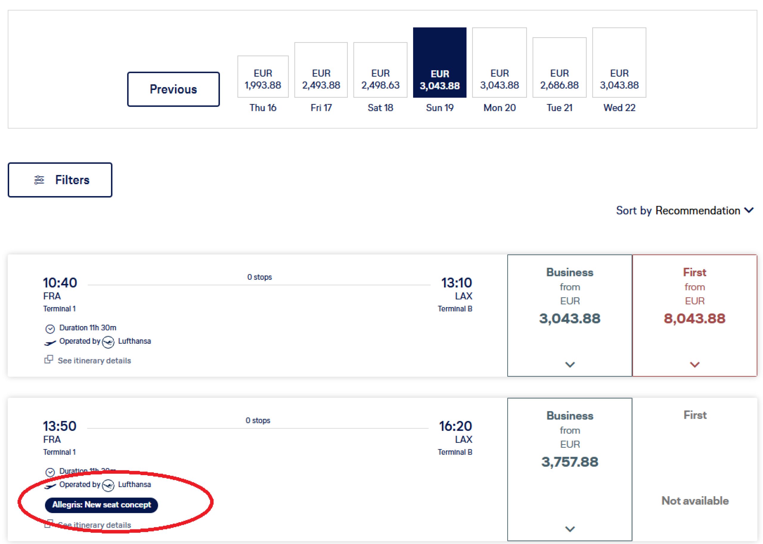 Oluline on alati valida konkreetne lennunumber. Mõnel lennuliinil (näiteks Frankfurt - Los Angeles) on mitu lendu päevas, kuid ainult üks neist on varustatud Allegrise istmetega.