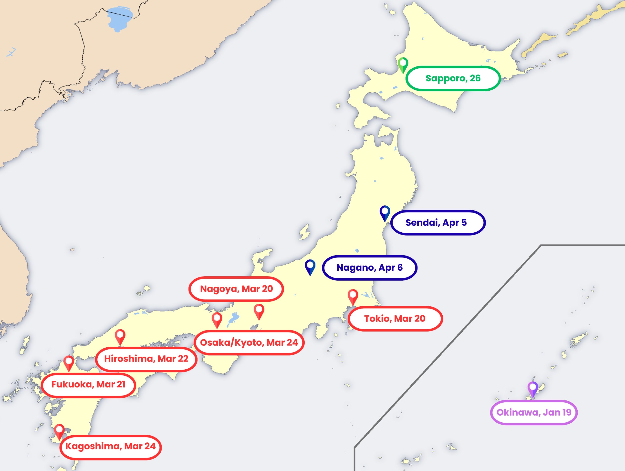 Kõige kindlam viis sakurat tõeliselt näha on mitte piirduda ühe linnaga. Õitsemine võib hilineda mitu päeva ja lühike ümberistumine teeb sageli kõik vahet.