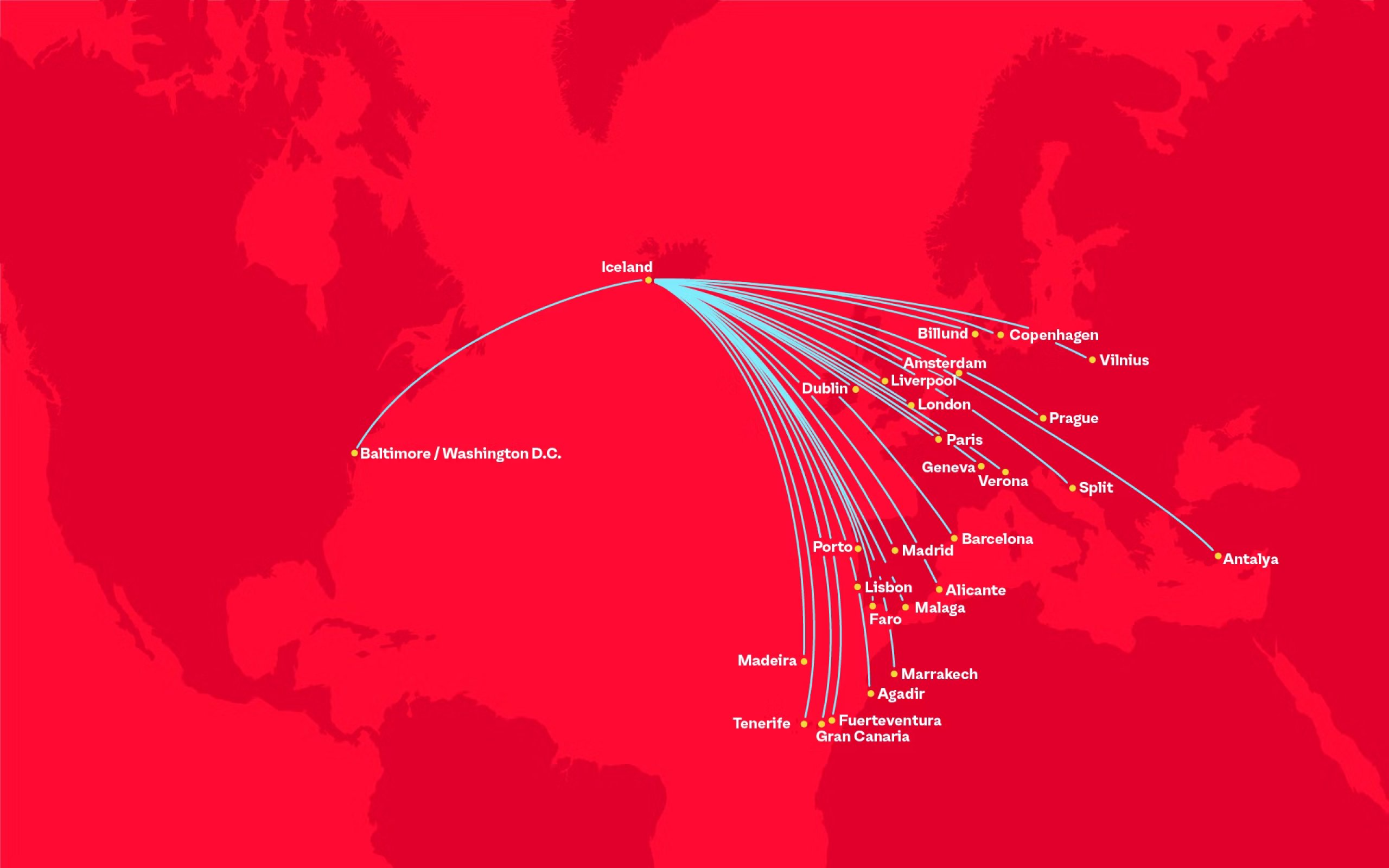 Lennud Põhja-Ameerikasse lõpetati järk-järgult, keskendudes islandlaste vedamisele mereäärsetesse puhkekohtadesse ja ka vastupidise potentsiaaliga liinidele - turistide toomisele Islandile. Näiteks olid populaarsed lennuliinid Prahas PRG, Varssavis WAW, London STN, Vilniuses VNO või Pariisis CDG.