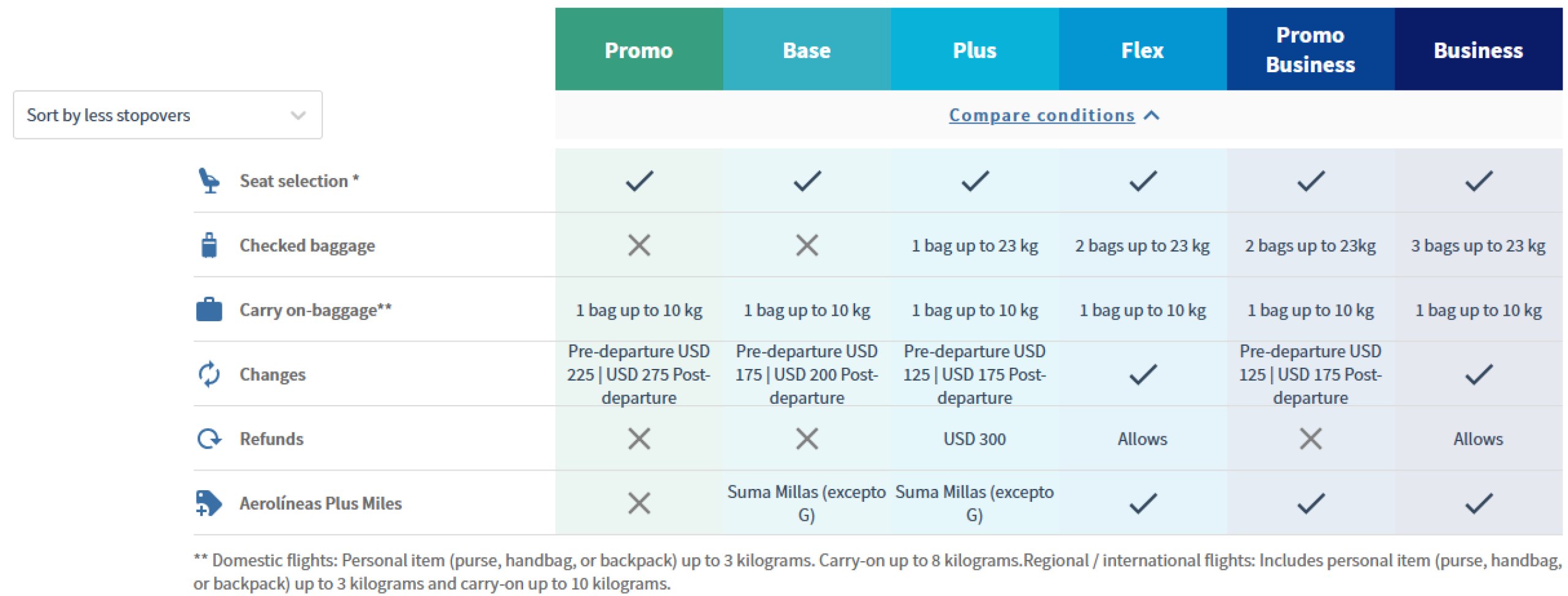 Piletid on jagatud mitmesse hinnagruppi, mis erinevad tasuta pagasi arvu, ümberistumistasude või tühistamisvõimaluste poolest.