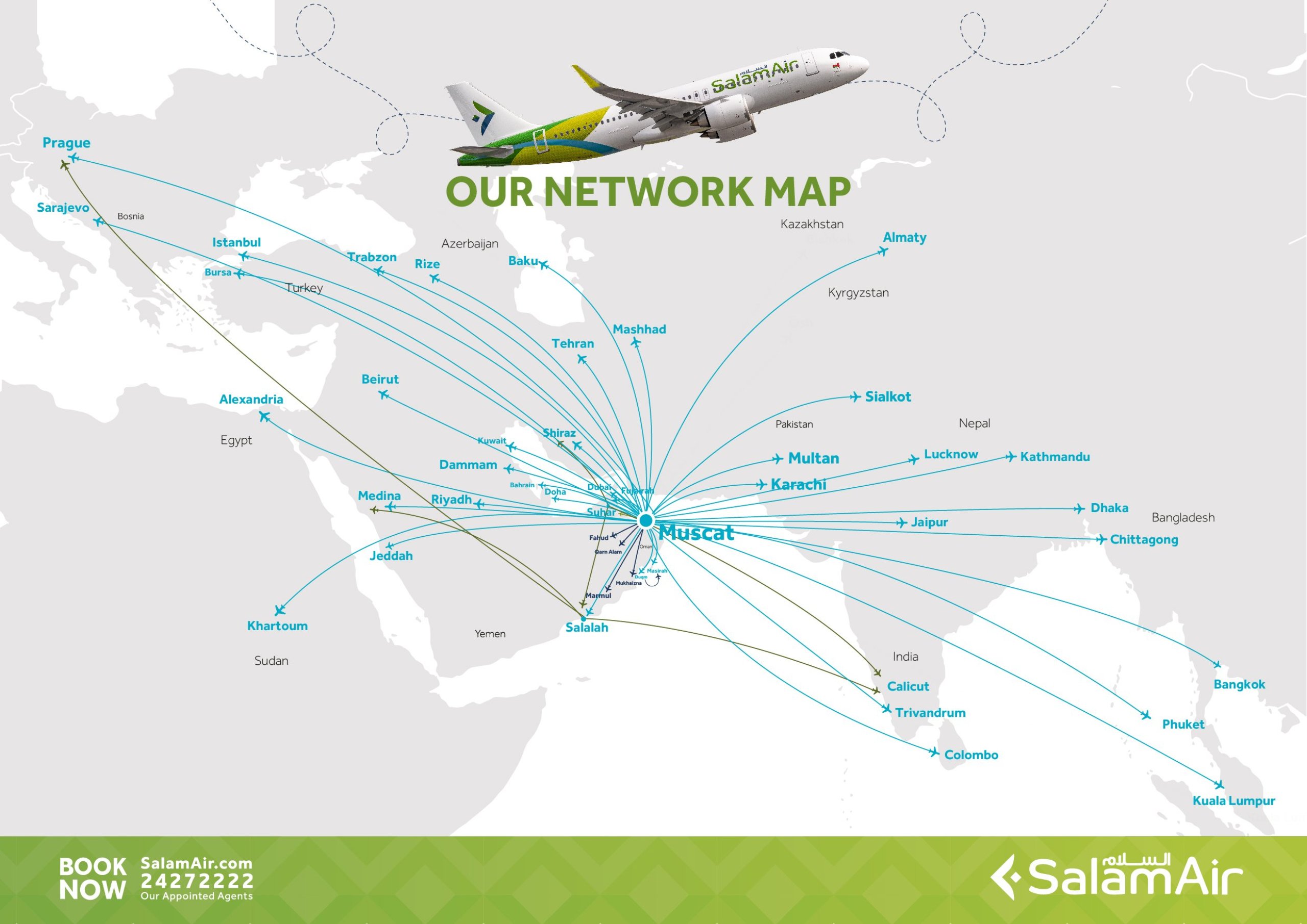Selge nimekirja sihtkohtadest leiate SalamAiri lennukaardilt aadressil salamair.com/our-network või allolevalt pildilt.