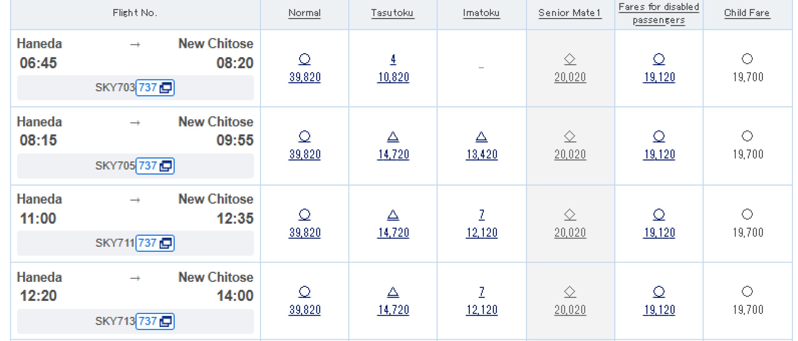 Skymark Airlines lendab mõnedel liinidel ka teiste lennufirmadega konkureerides, seega tasub alati hindu võrrelda hinnavõrdluslehtede kaudu.