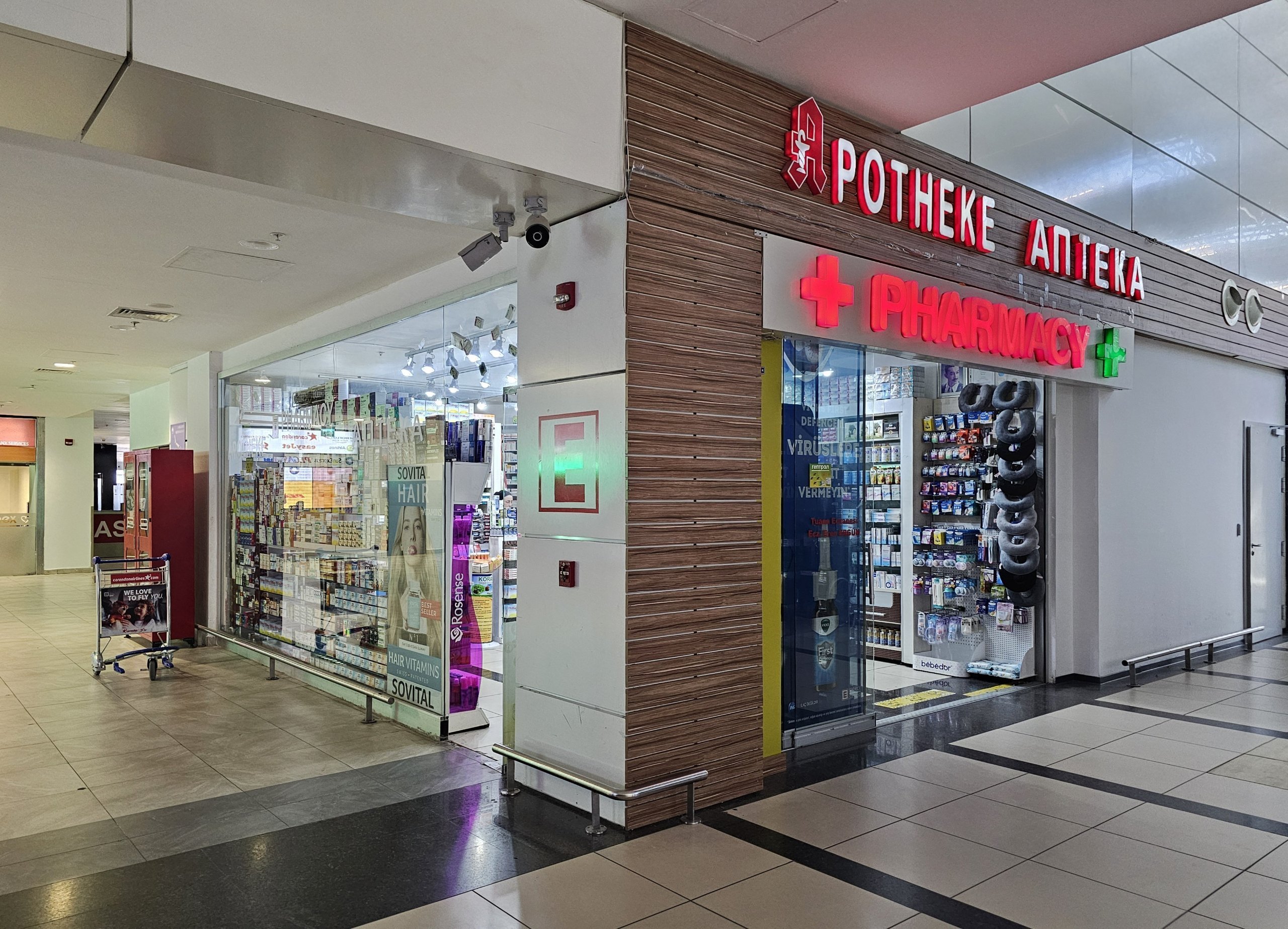 Apteeke leidub mõlema terminali üldkasutatavates ruumides (terminal 1 on avatud 24/7, terminal 2 on avatud 9:00-18:00).