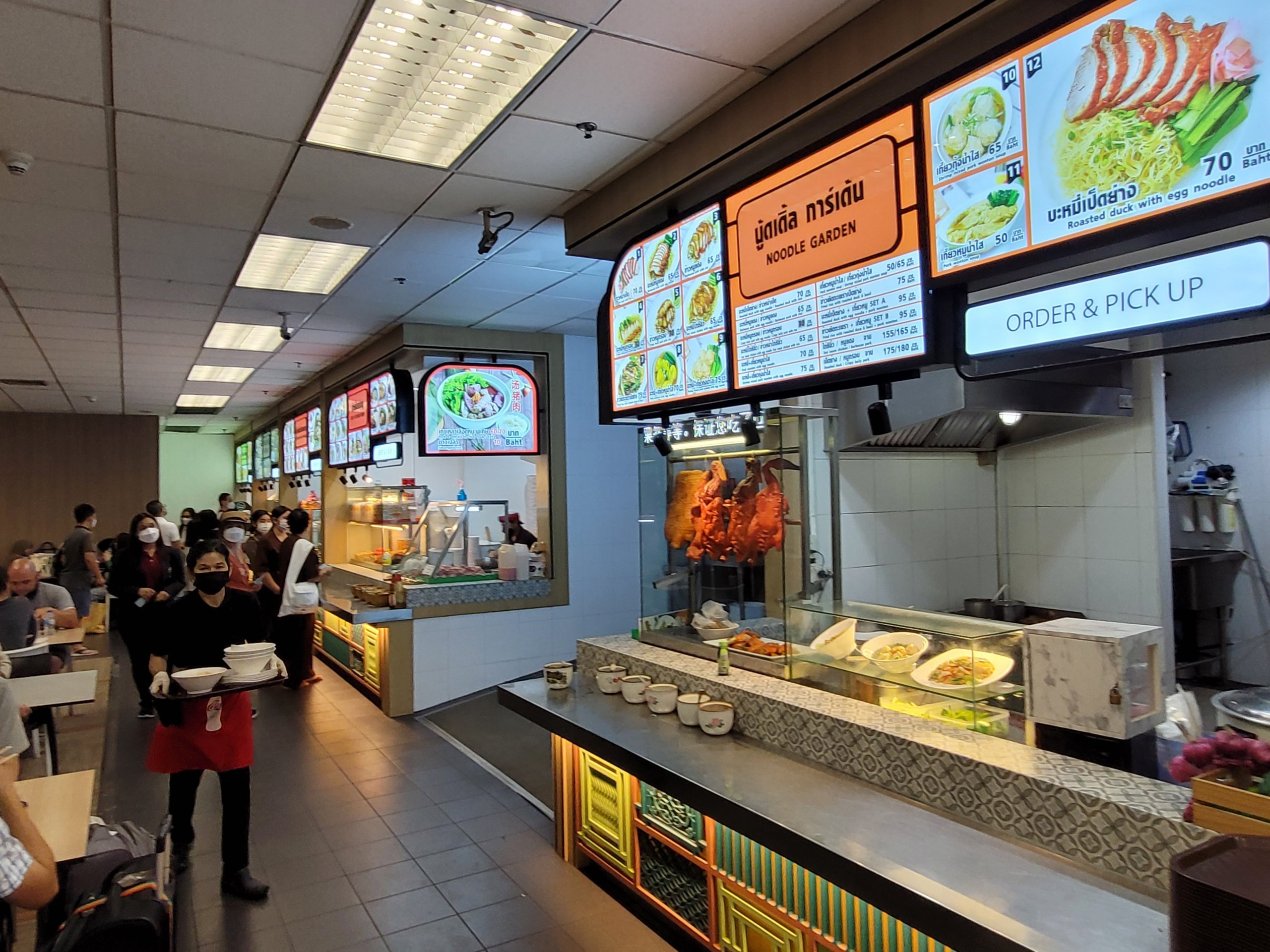 TIPP: avaliku osa esimesel korrusel (tähistatud kui 1. tasand), kõige tagumises otsas (paremal pool, kui väljute rongist) asub rahvalik söögikoht "Airport Street Food by Magic Food Point". See pakub peamiselt Tai ja Hiina kööki hinnaga alates 80 thb põhiroa eest. Sa sööd siin maitsvalt ja palju. Kohe pärast vasakult sisenemist peate kassas raha vahetama kupongide vastu, millega saate siis igas kioskis toidu eest maksta.