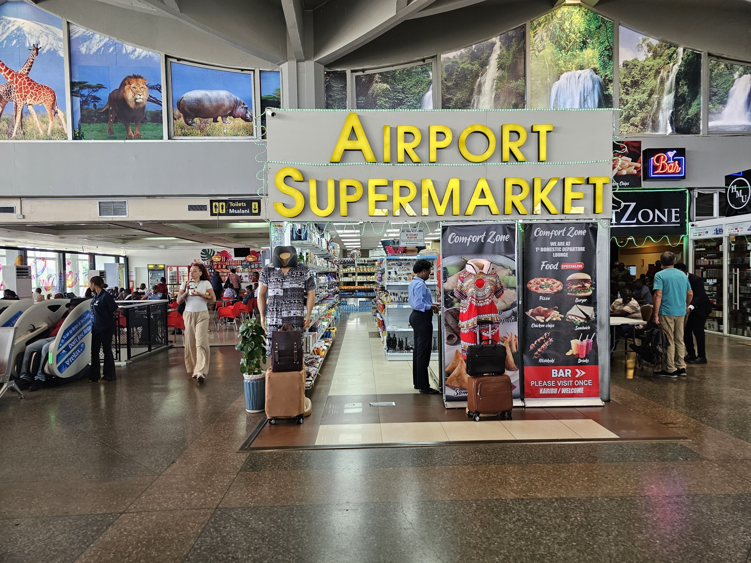 Pärast turvakontrolli on veel üks miniturg maiustuste ja jookidega, kuid muid kauplusi ei ole.