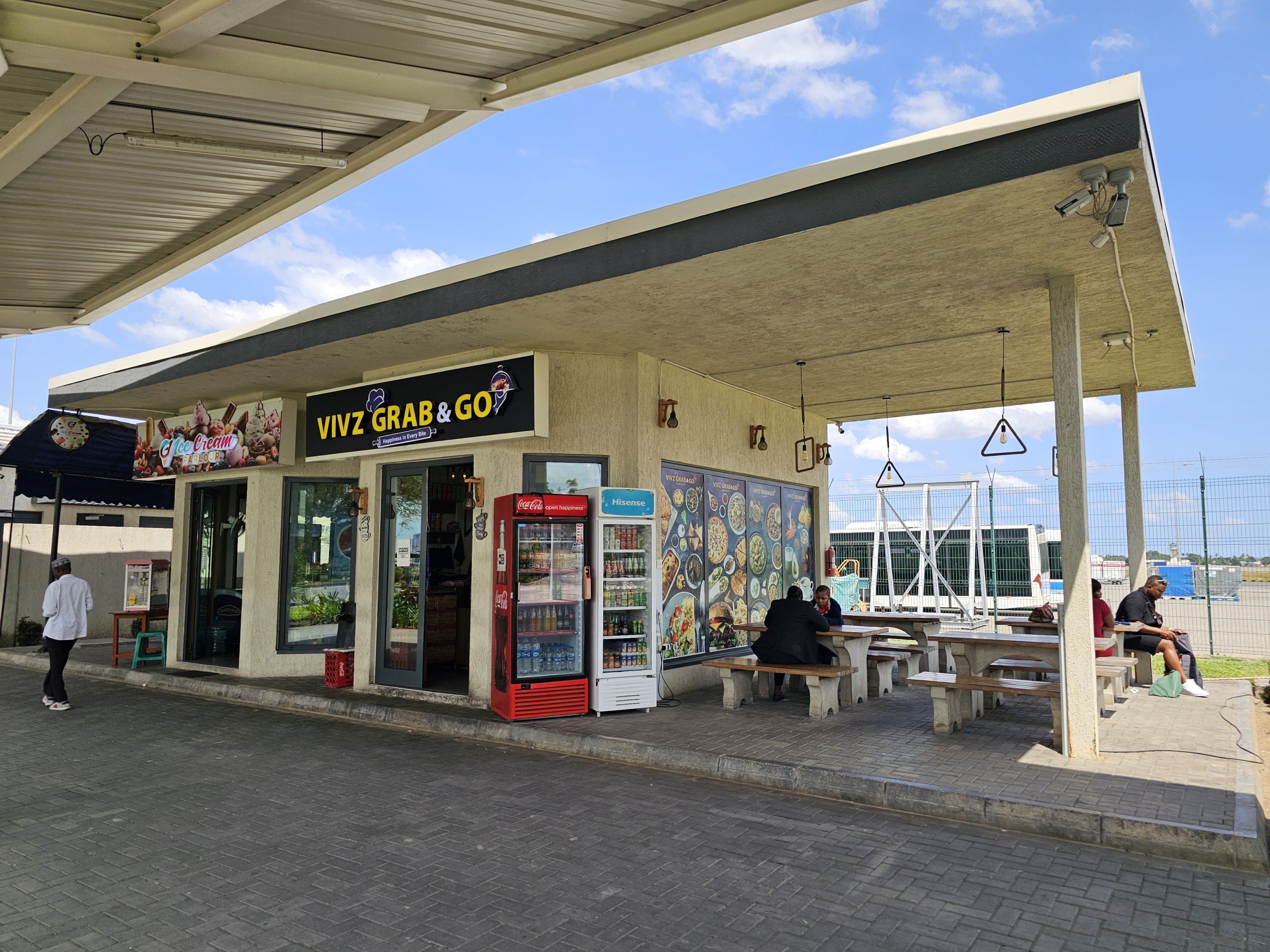 Terminalides 2 ja 3 on avalikus ruumis BAO kohvik, kus saab osta sooja sööki. Suure söögi ja jookide hinnad on umbes 20 000 tzi.