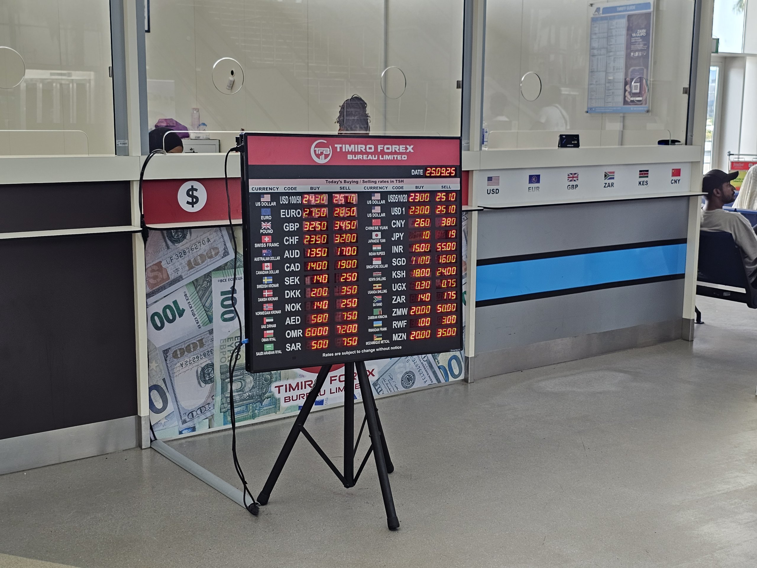 Saabuvate lendude saalis on letid, kust saate osta oma Tansaania viisa saabumisel.