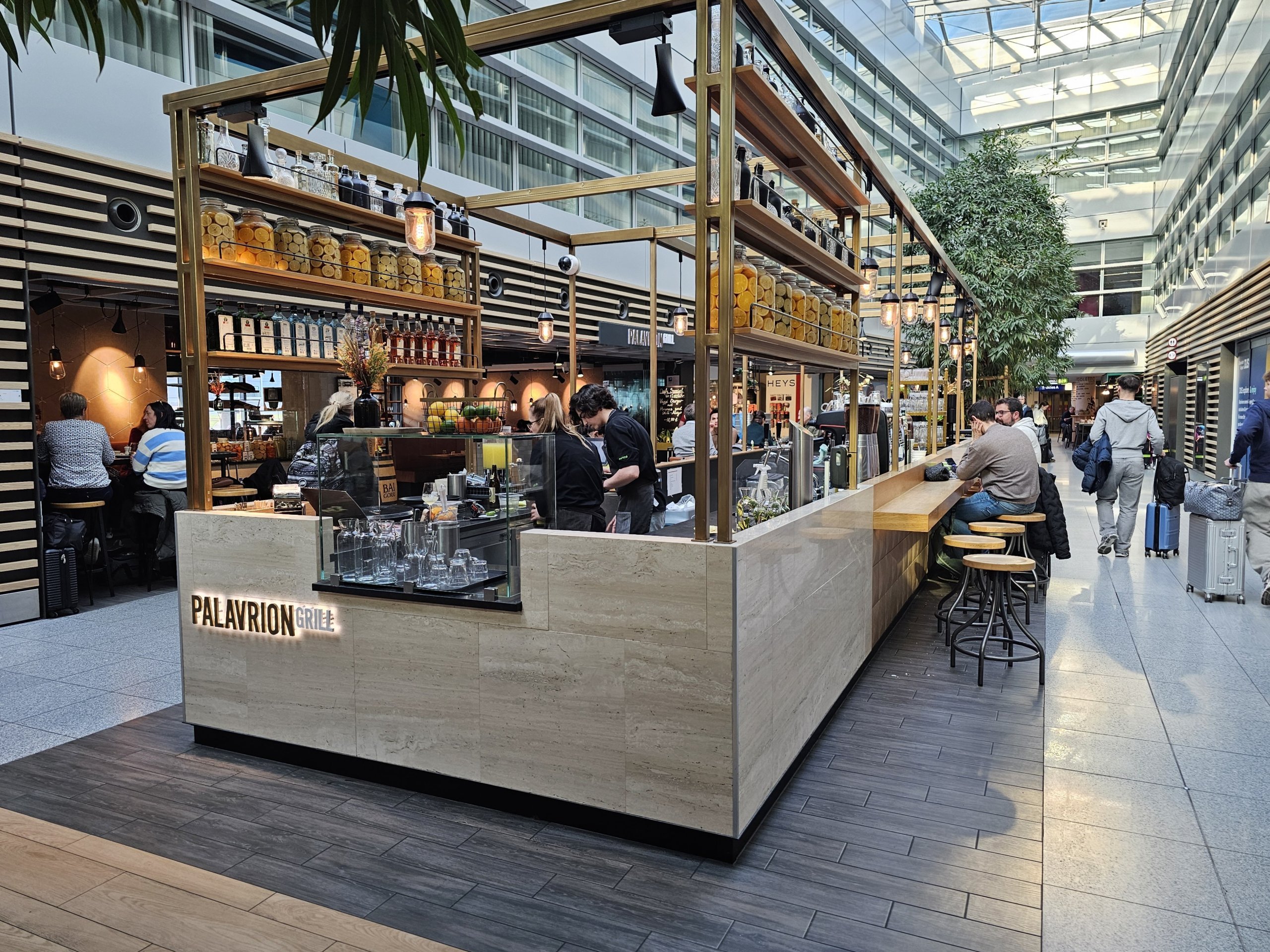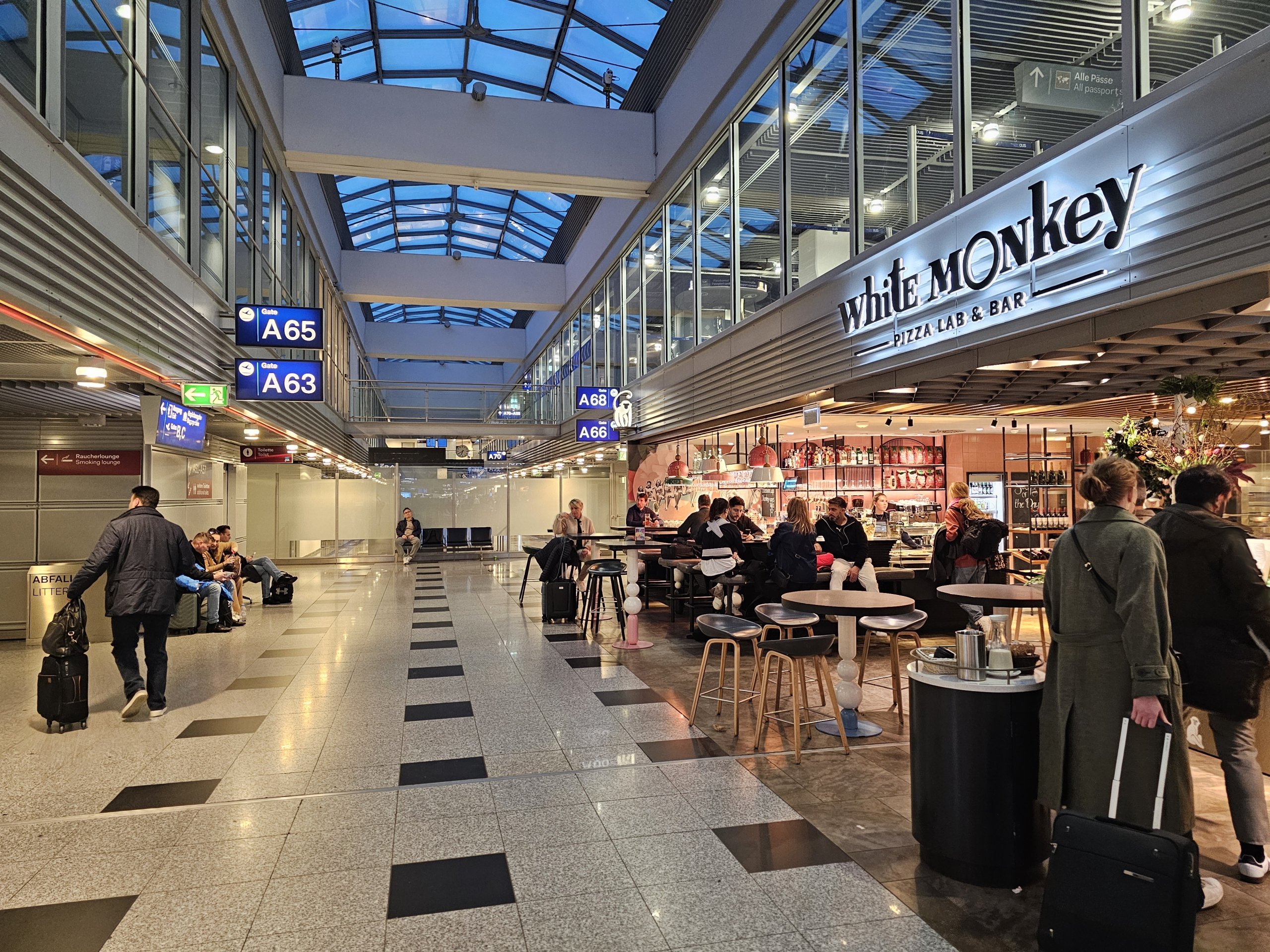 Düsseldorfi lennujaamas on palju söögikohti nii pärast turvakontrolli kui ka avalikus ruumis.