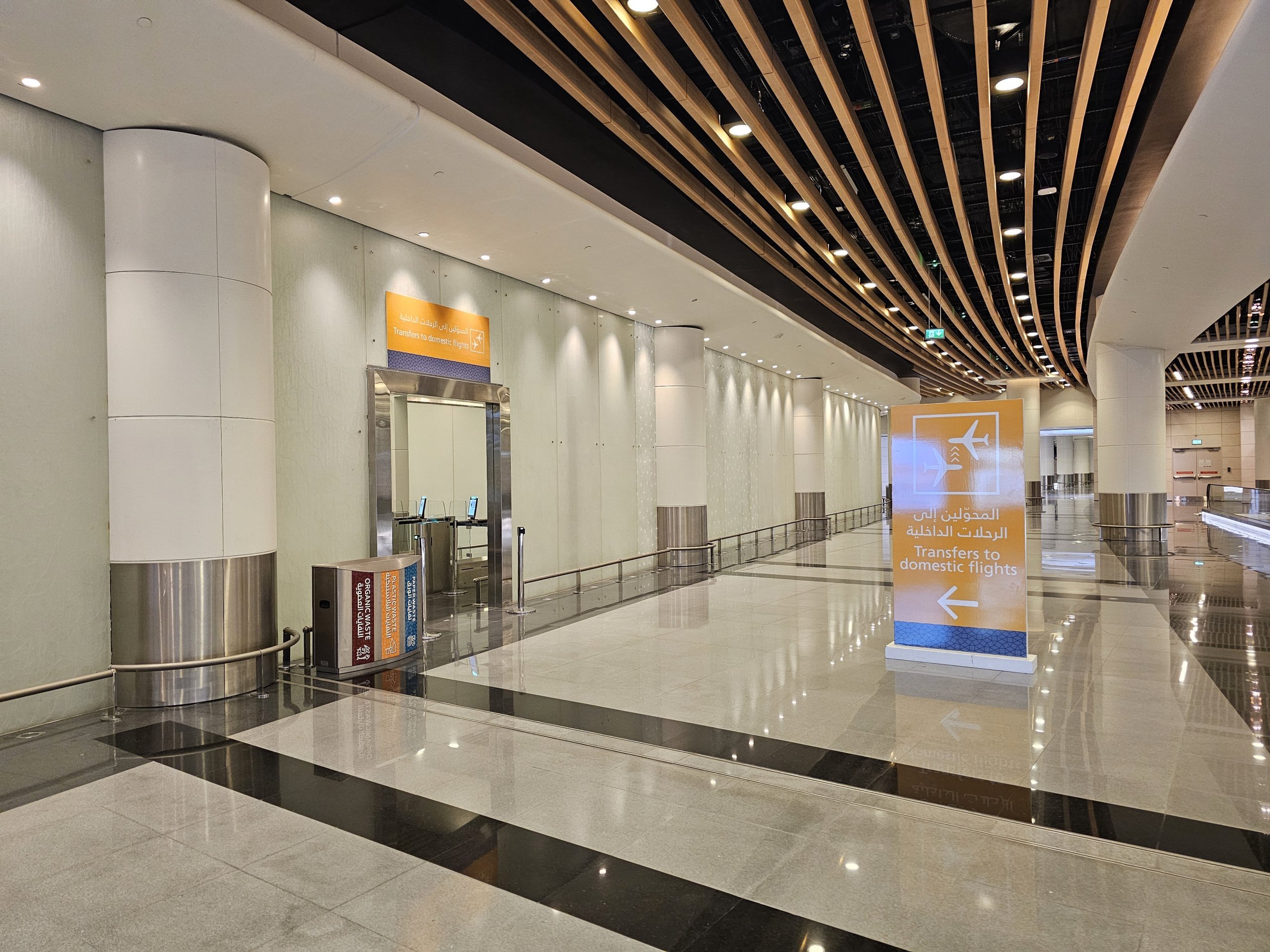Turvakontrolli taga on keskne ala, mis on täis poode ja restorane ning kolm väljumisväravatega ala. Vahemaad ei ole suured ja immigratsioonikontrolli protsess kipub olema kiire.