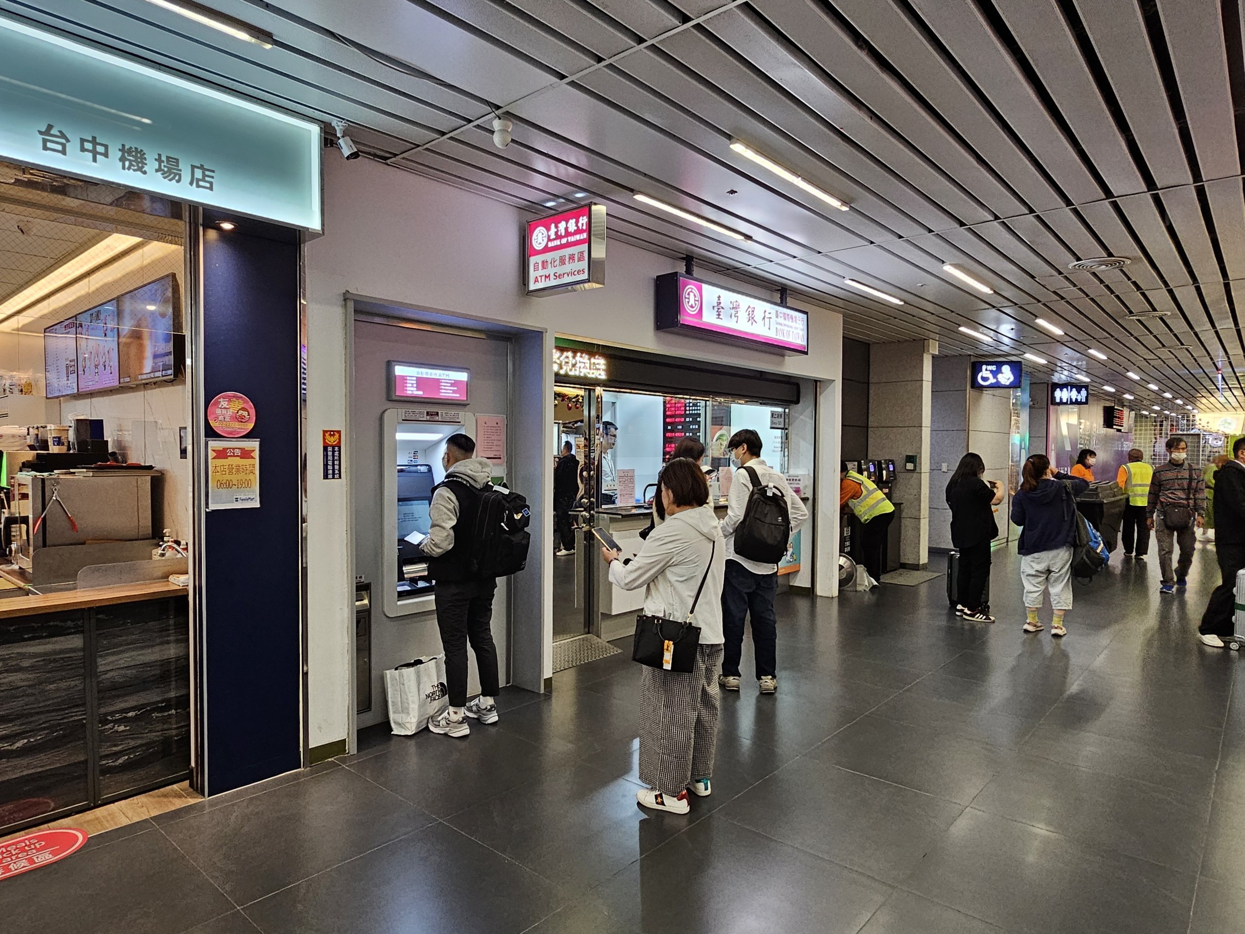 Rahvusvahelise terminali saabuvate lendude saalis on mitme Taiwani panga filiaalid, mis pakuvad soodsa hinnaga rahavahetust.